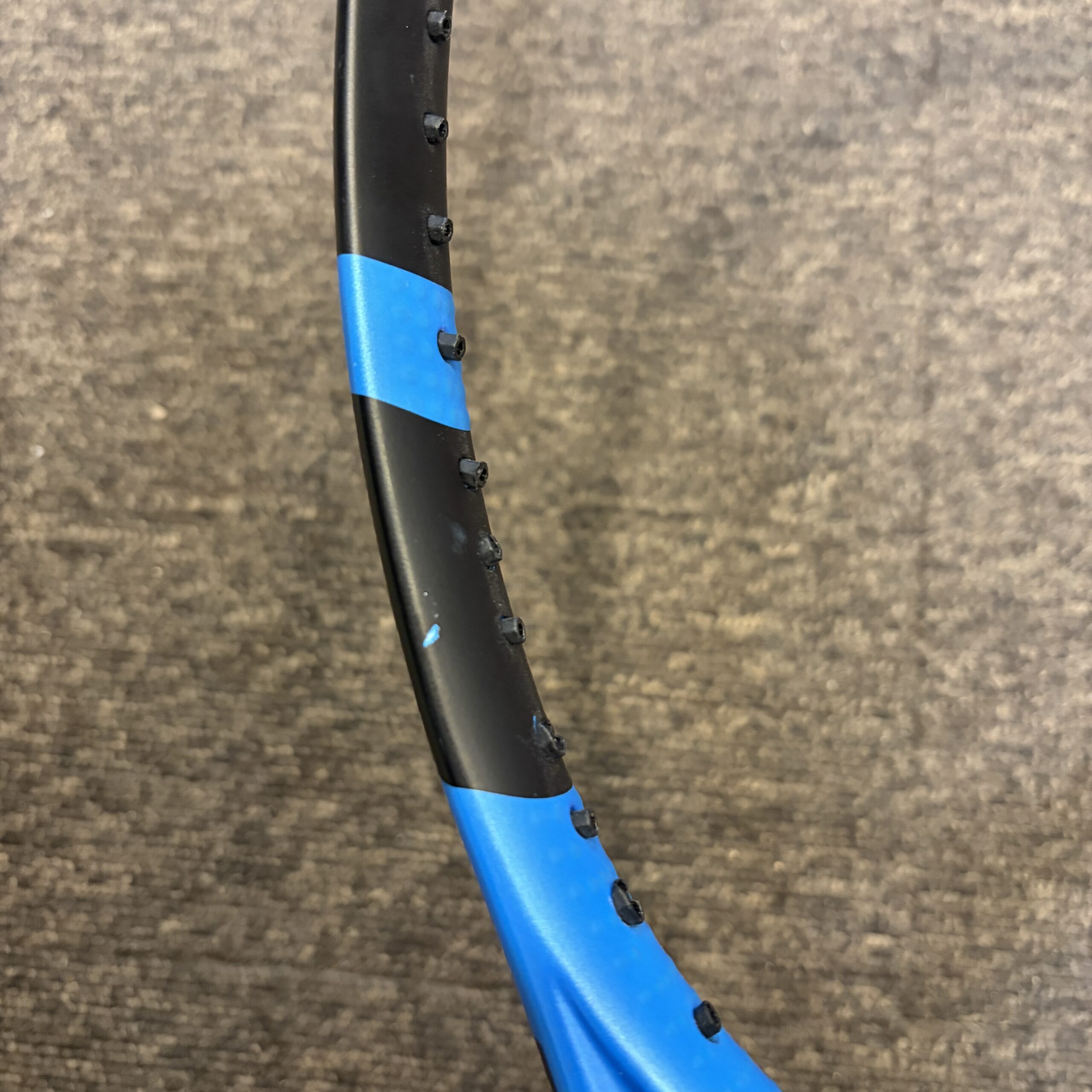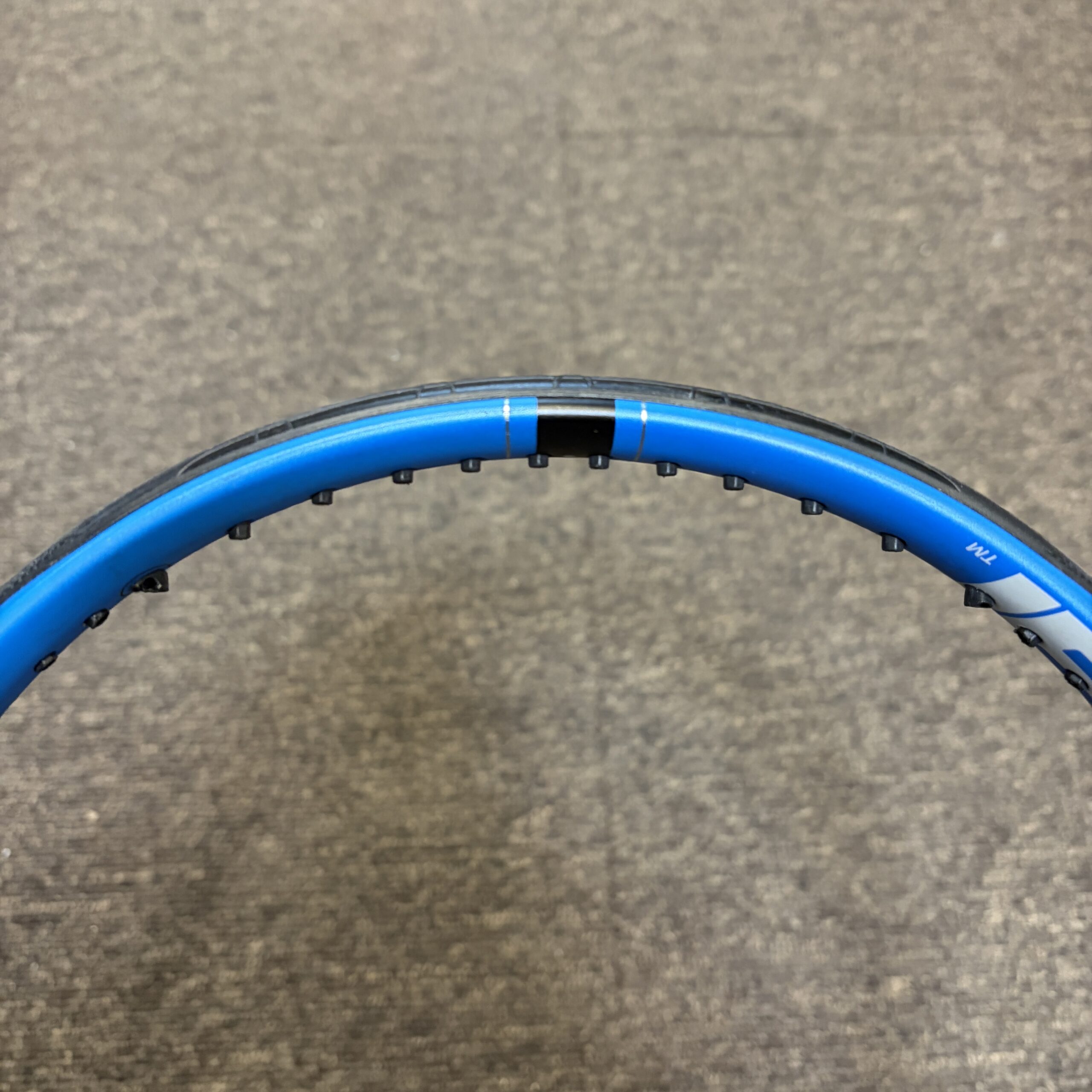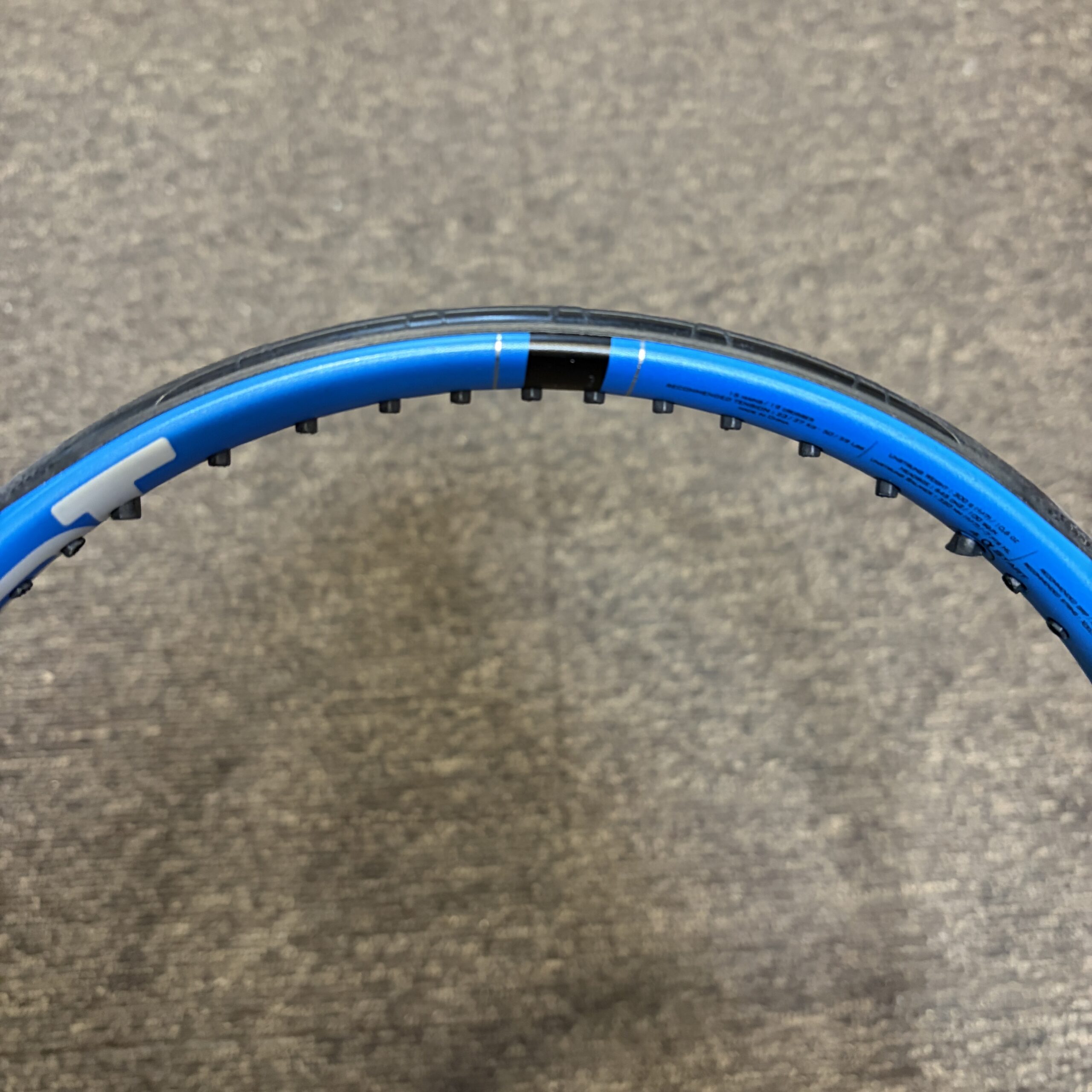 - 微調整のウェイトはフレーム外貼りとなりますが、次回張替えご依頼時にグロメット内に仕込み直し(1,100円)を承ります。