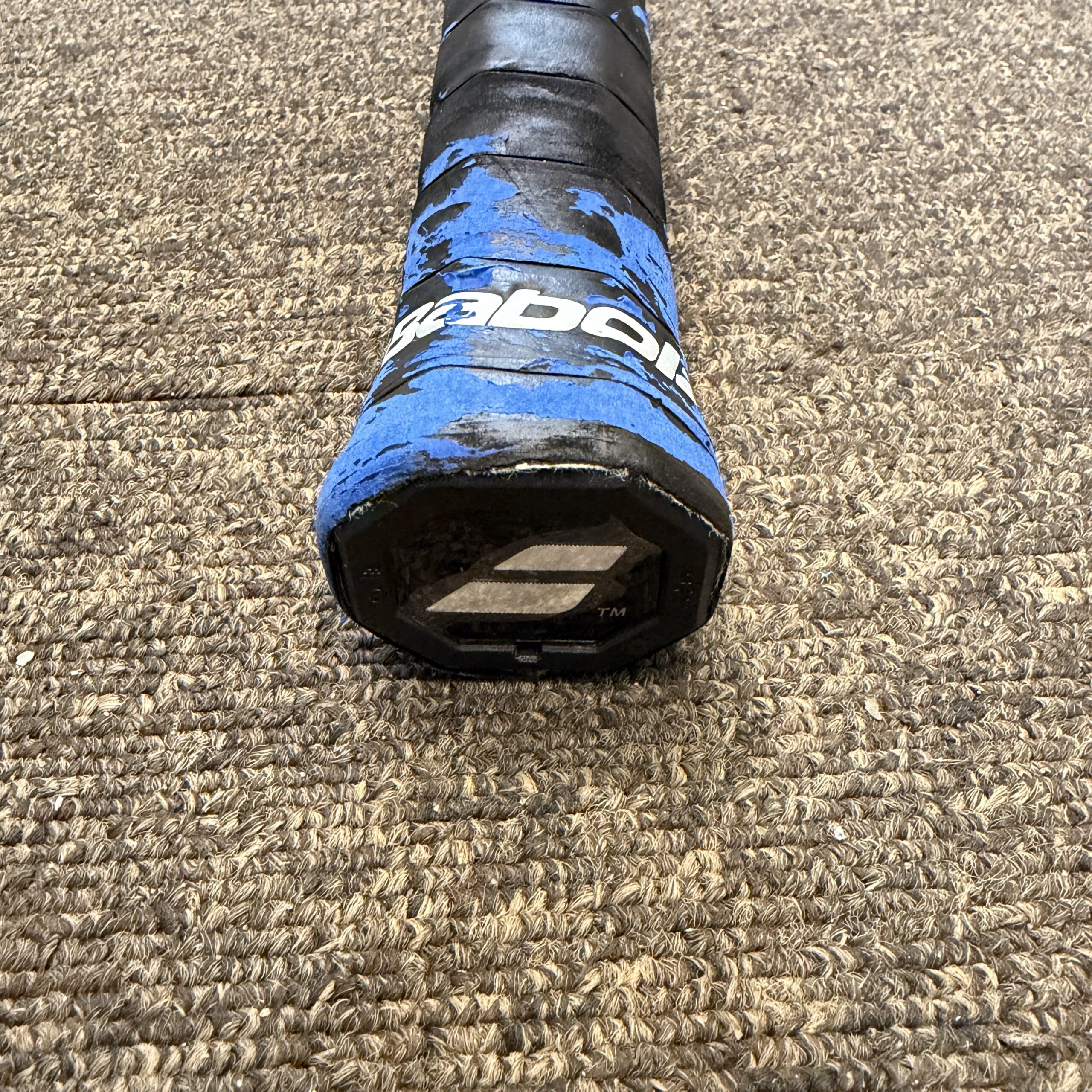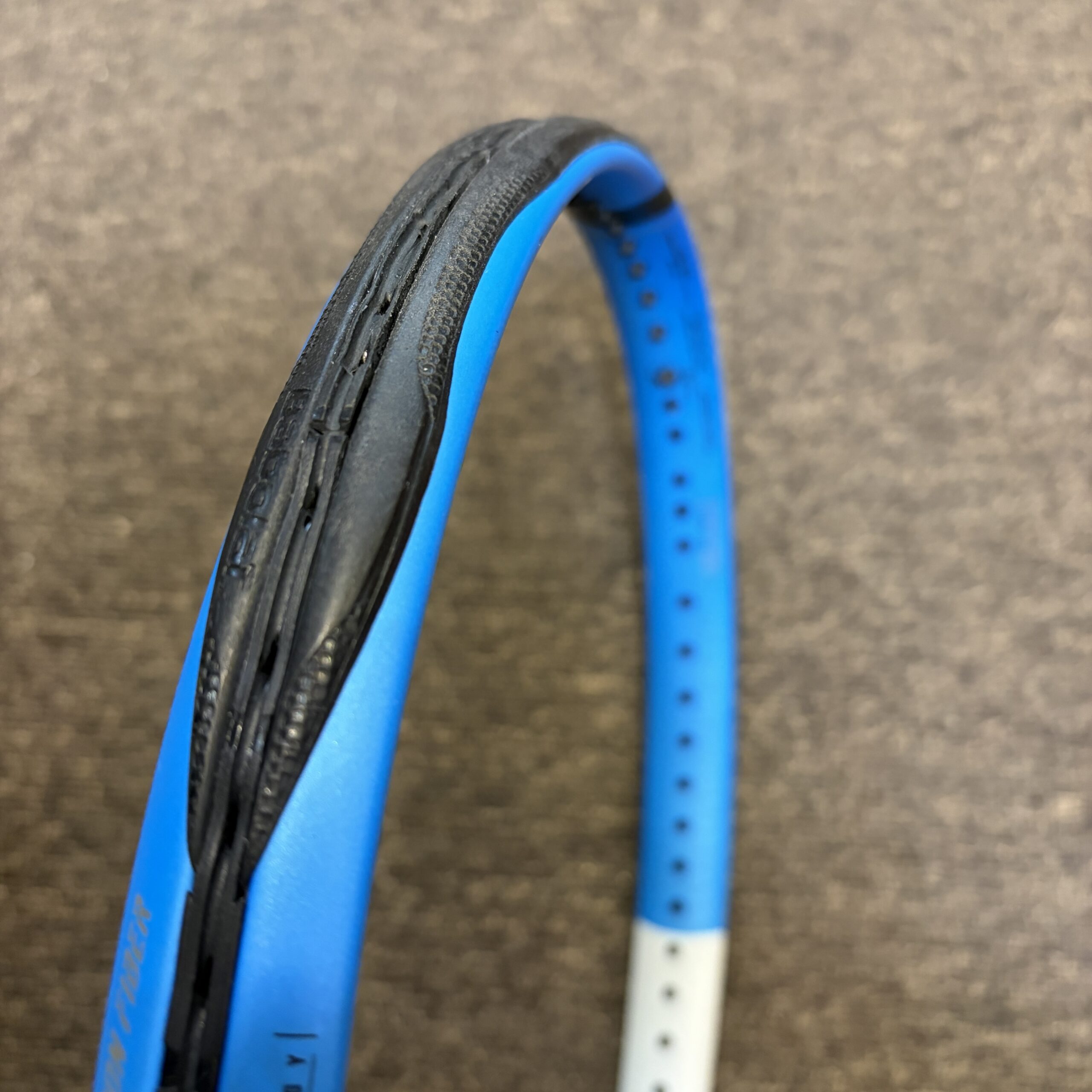 レザーにオーバーグリップの裏地がくっついているのと、レザーの表面が少し劣化がみられます。
