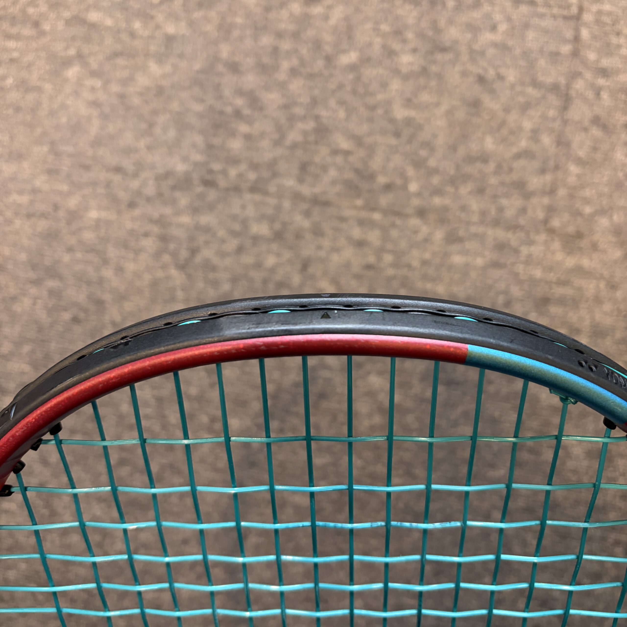 - 微調整のウェイトはフレーム外貼りとなりますが、次回張替えご依頼時にグロメット内に仕込み直し(1,100円)を承ります。
